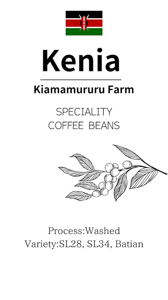 ケニア キアワムルル農園 生産者名 Rumukia Coop 標高1700m 精製ウォッシュド グレード:AA 品種sl24,38,Batiam 華やかで奥深い香り広がり、口に含むとカシスやグレープのようなジューシーな果実感とクリーンな酸を感じチョコレートのような甘さが余韻に残る。 毎朝飲みたくなるようなコーヒー☕